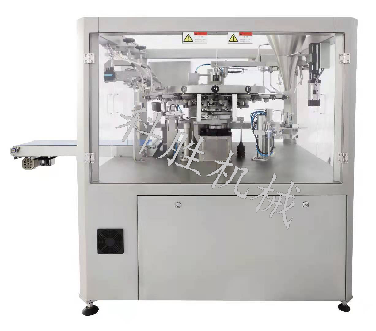 KS8-300給袋式醬料包裝機(jī)(伺服型)/辣椒油包裝機(jī)/番茄醬包裝機(jī) 此套設(shè)備由給袋式包裝機(jī)、膏體灌裝機(jī)(也可以選擇顆粒醬狀灌裝機(jī))配合而成 根據(jù)包裝物料不同選擇不同的下料方式。 可包裝產(chǎn)品有:洗滌劑、黃灑、醬油、米醋、果汁、飲料、番茄醬、花生醬、果醬、辣椒醬、豆瓣醬、番茄醬、辣椒油、火鍋底料等。 技術(shù)參數(shù) 型號(hào) KS8-300 機(jī)械工位 八工位 包裝袋類型 自立袋、四邊封袋、三邊封袋、紙袋等復(fù)合袋 包裝袋尺寸 寬度:150-300mm 長(zhǎng)度≤400mm (包裝袋尺寸寬窄可自動(dòng)調(diào)節(jié)) 包裝重量 1500g, 視充填物的比重而定 包裝速度 10-60袋/分(其速度由加物料自身及填充重量決定) 可同時(shí)充填兩次物料 機(jī)械重量 720Kg 電壓 380V 50HZ 總功 7KW 外形尺寸 2100*1500*1520mm 壓縮空氣消耗量 0.5-0.7MPa(由提供)