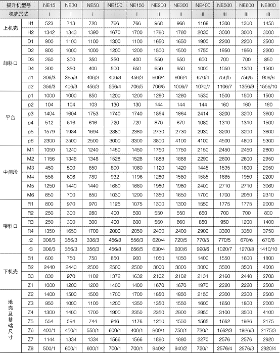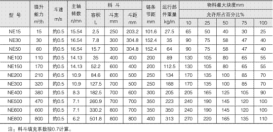 NE系列斗式提升機技術(shù)參數(shù):