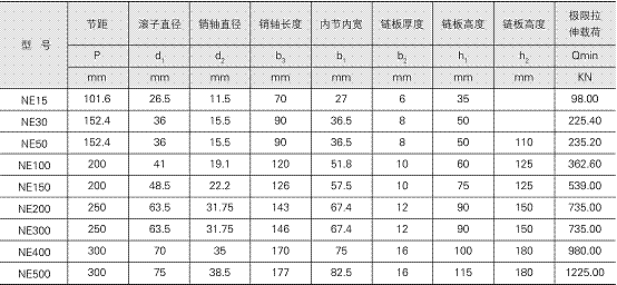 NE型斗式提升機鏈技術(shù)參數(shù):