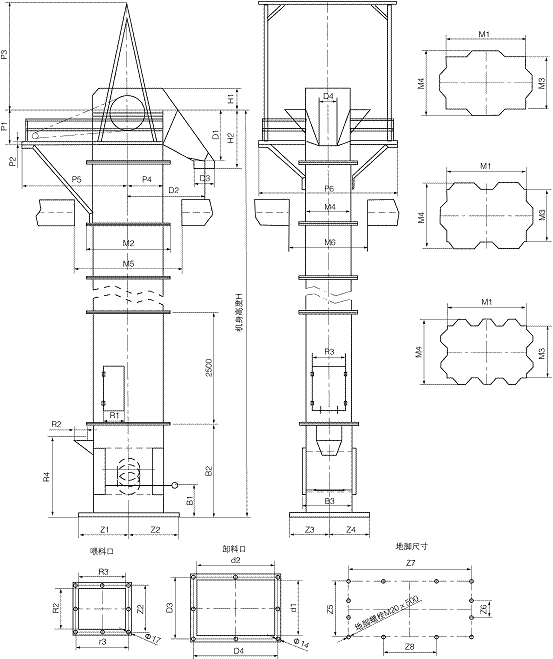 四、NE型斗式提升機的外形及安裝尺寸: