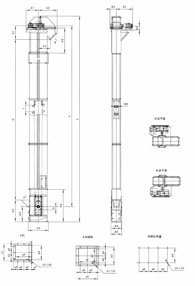 2、TD型斗提機的傳動裝置有兩種型式,分別配有YZ型減速器或ZQ(YY)型減速器。YZ型減速器直接安裝在軸頭上,省去了傳動平臺、聯(lián)軸器等,使結(jié)構(gòu)緊湊、重量輕,而且其內(nèi)部帶有異型逆止器,逆止可靠。該減速器噪音低,運轉(zhuǎn)平穩(wěn),并隨主軸浮動,可消除安裝應(yīng)力。
