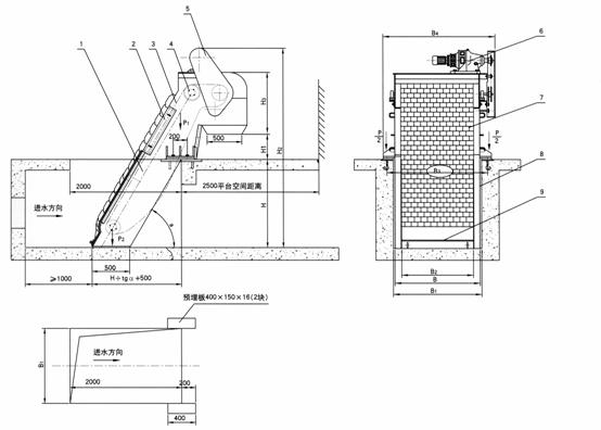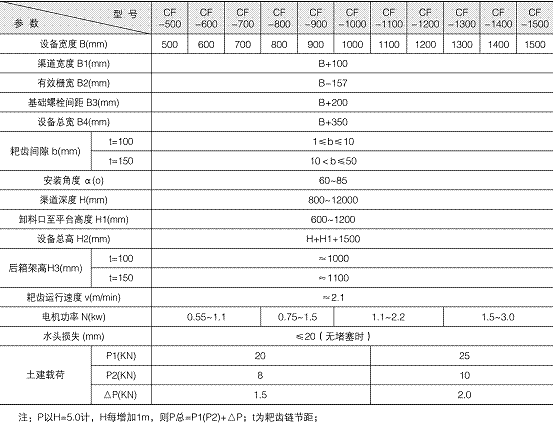 3、耙齒規(guī)格兩種,粗格柵耙齒節(jié)距t=150mm,細(xì)格柵耙齒節(jié)距t=100mm;