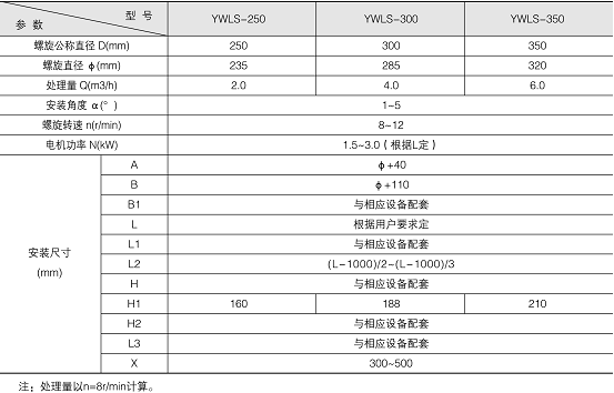 YWLS 型壓榨式螺旋輸送機適用于城鎮(zhèn)污水處理廠,住宅小區(qū)污水預(yù)處理裝置、市政雨/污水泵站及自來水廠等的柵渣處理,它主要與格柵等設(shè)備配套使用,將柵渣進(jìn)行輸送、壓榨及脫水。